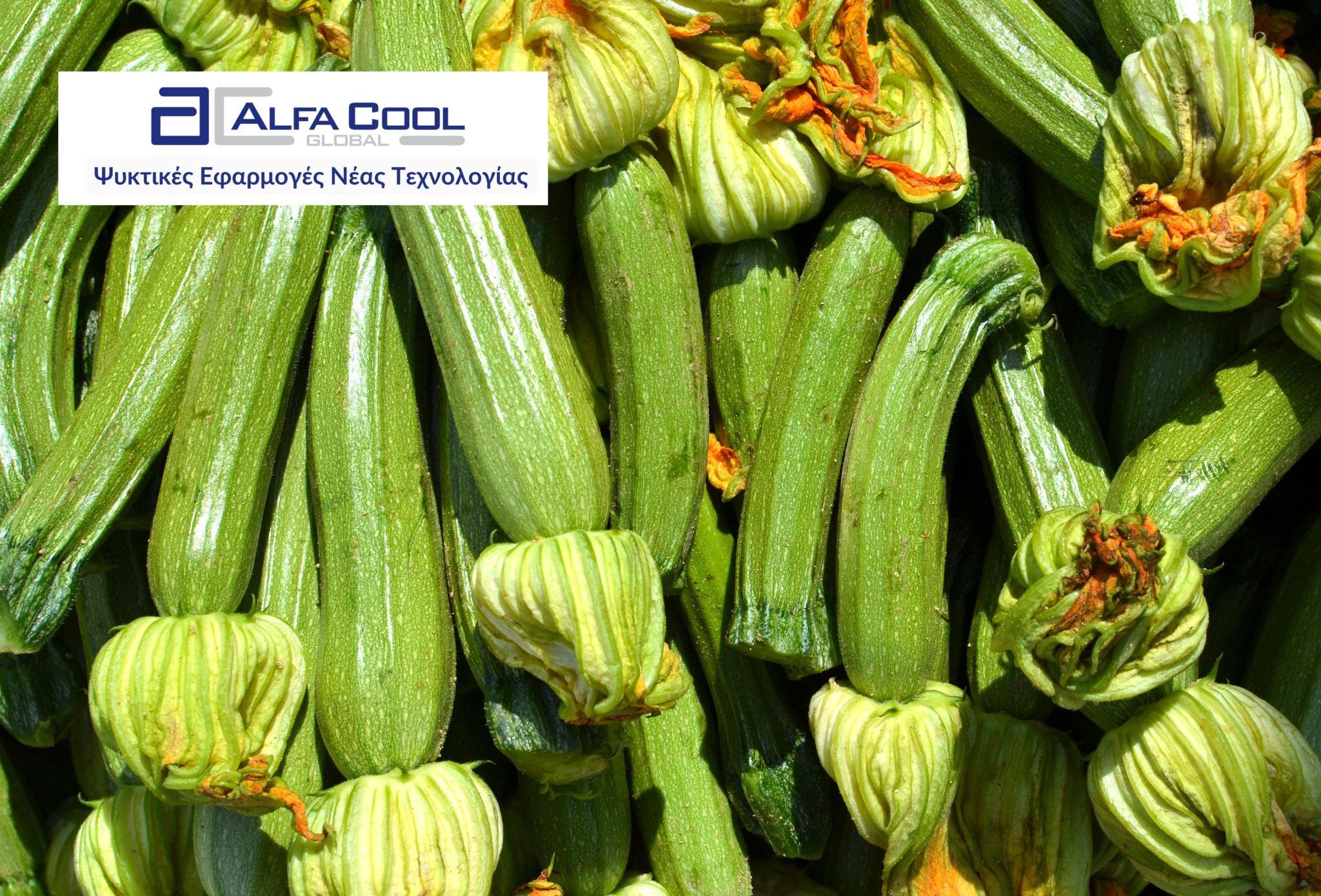 Για κολοκυθάκια με ανθό χρησιμοποιείστε ΨΥΚΤΙΚΟΥΣ ΘΑΛΑΜΟΥΣ ΧΑΜΗΛΟΥ ΑΕΡΙΣΜΟΥ ΣΥΝΕΧΟΥΣ ΡΟΗΣ ΝΕΡΟΥ: Αποτελεί τον πλέον εξειδικευμένο ψυκτικό θάλαμο για προϊόντα με απαιτήσεις υψηλής υγρασίας και με κυκλοφορία αέρα μικρότερη από 25 ανακυκλοφορίες ανά ώρα σε σχέση με το συνολικό όγκο του θαλάμου. Η υψηλή υγρασία εξασφαλίζεται με νερό που παρέχεται σε συνεχή ροή.
